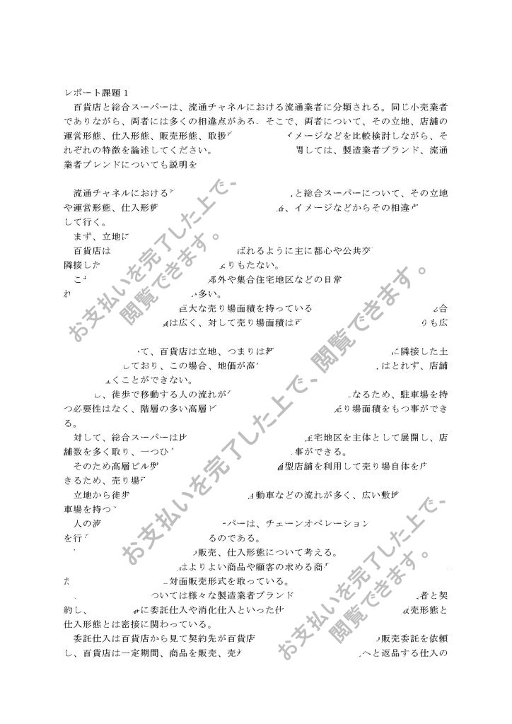 流通チャネルにおける流通業者に分類される百貨店と総合スーパーについて、その立地や運営形態、仕入形態、販売形態、取扱商品、価格、イメージなどからその相違点を比較して行く。