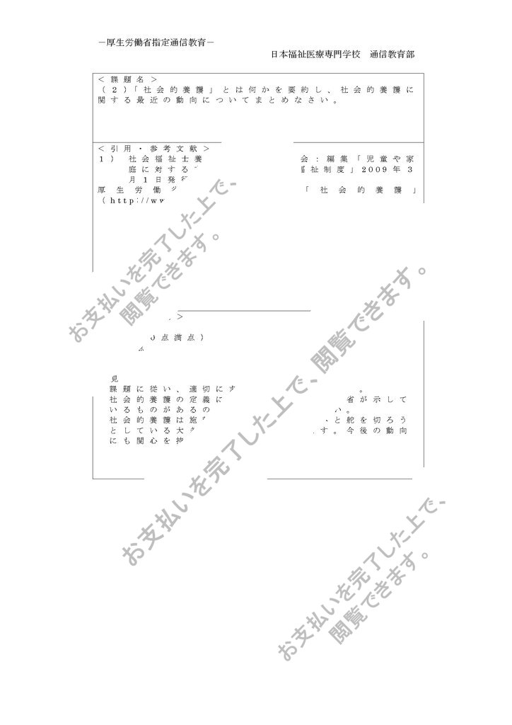 <課題名>:「社会的養護」とは何かを要約し、社会的養護に関する最近の動向についてまとめなさい。