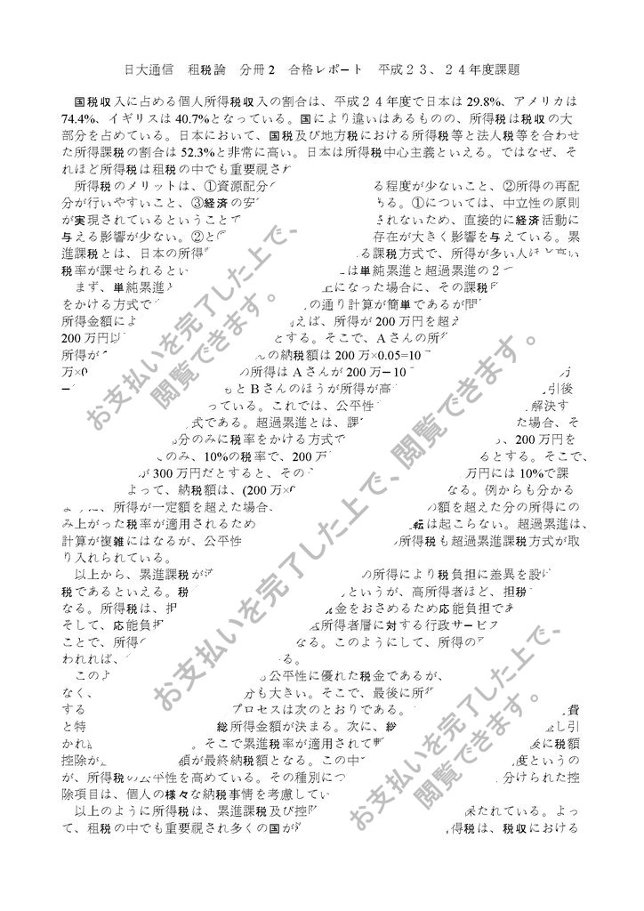 日大通信 租税論 分冊2 合格レポート 平成23、24年度課題