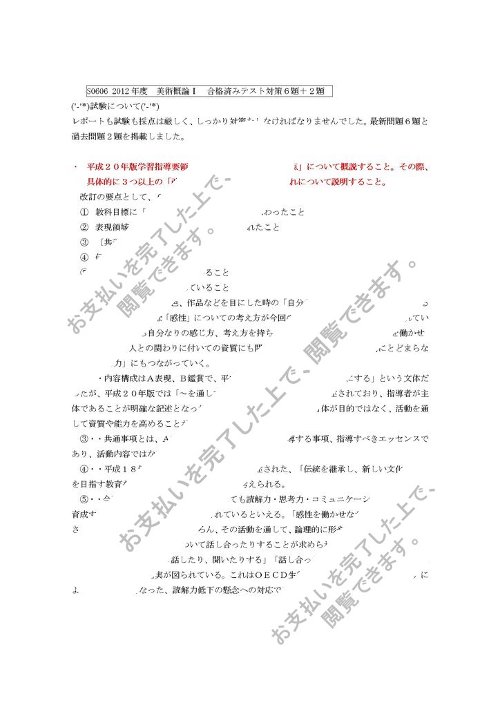 S0606 2012年度 美術概論Ⅰ 合格済みテスト対策6題+2題