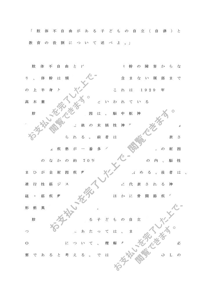 「肢体不自由がある子どもの自立(自律)と教育の役割について述べよ。」