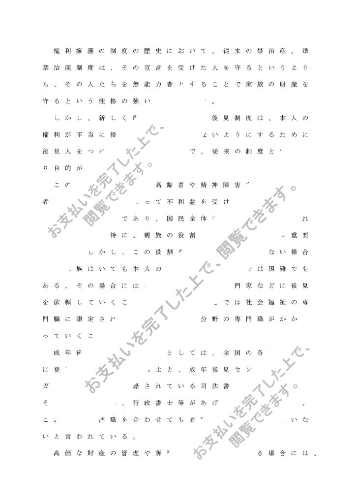 成年後見人等の候補者としては、全国の各弁護士会に登録されている弁護士と、成年後見センター、リーガルサポートに登録されている司法書士、社会福祉士、その他に税理士、行政書士等があげられるが、現状、これらの専門職...