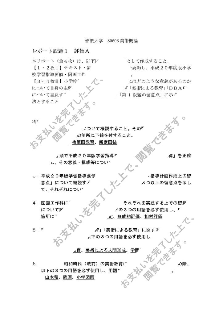 【3〜4枚目】小学校学習指導要領(上記要約)にはどのような意義があるのかについて自身の主張を述べること。その際、必ず「美術による教育」「DBAE」について言及すること。引用を行う場合は「第1設題の留意点」に示された方法とすること。