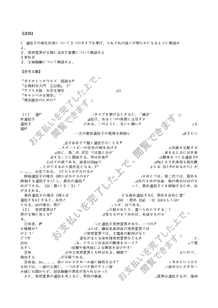 2.突然変異が生物に及ぼす影響について解説せよ。