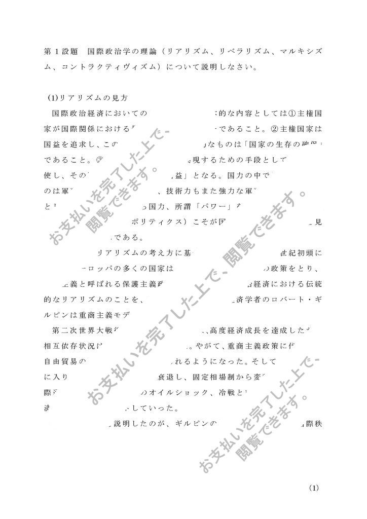 第1設題 国際政治学の理論(リアリズム、リベラリズム、マルキシズム、コントラクティヴィズム)について説明しなさい。