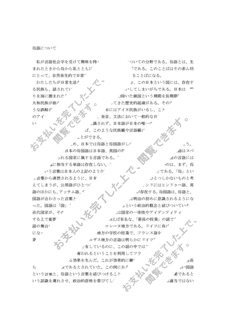私が言語社会学を受けて興味を持った分野は母語についての分野である。母語とは、生まれたときから母から乳とともに受け取っていくことばである。このことばはその赤ん坊にとって、自然発生的で日常で特に意識しなくても話せることばになる。