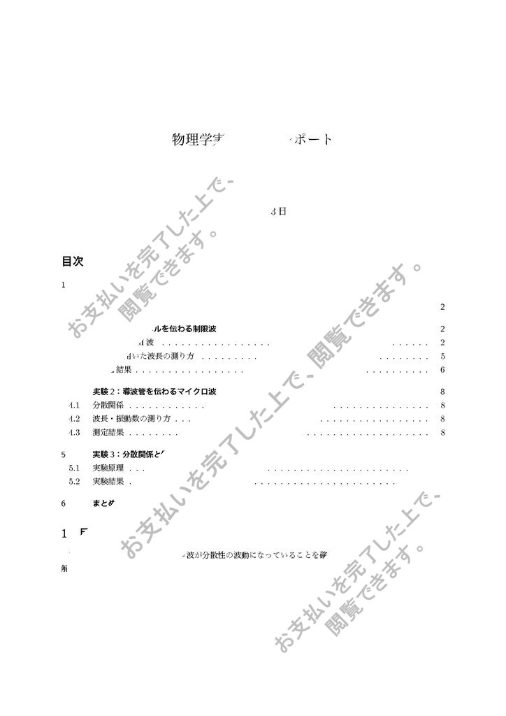 理科大一部物理学科のマイクロ波のレポートです。分散関係、チャンネルを伝わる制限波、導波管を伝わるマイクロ波、偏光のしくみ、計算方法等。