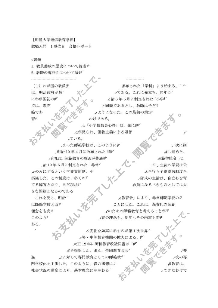 【教職入門】 1単位目 合格レポート 明星大学通信