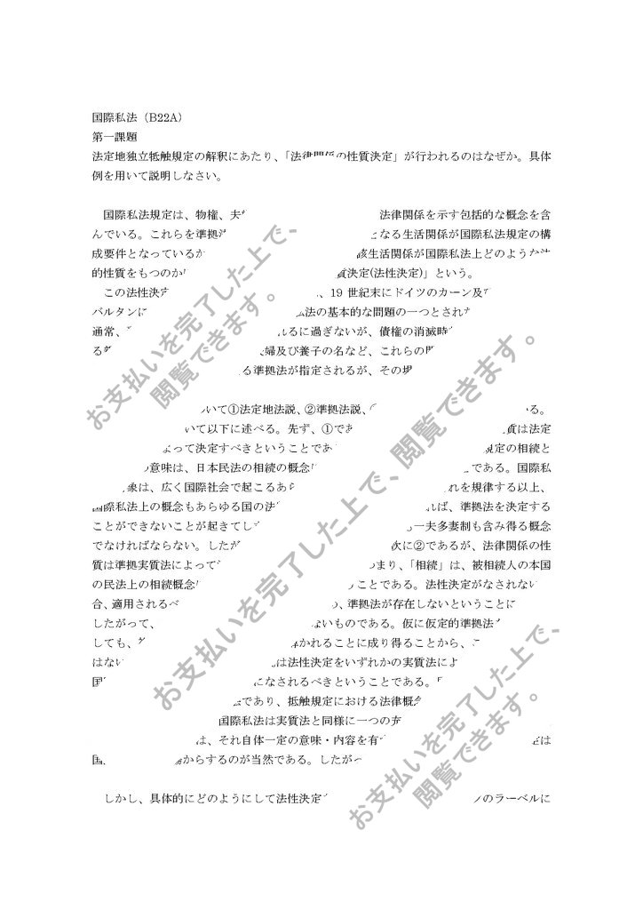 この問題の解決について①法定地法説、②準拠法説、③自主的決定説が主張されている。これらの学説について以下に述べ...
