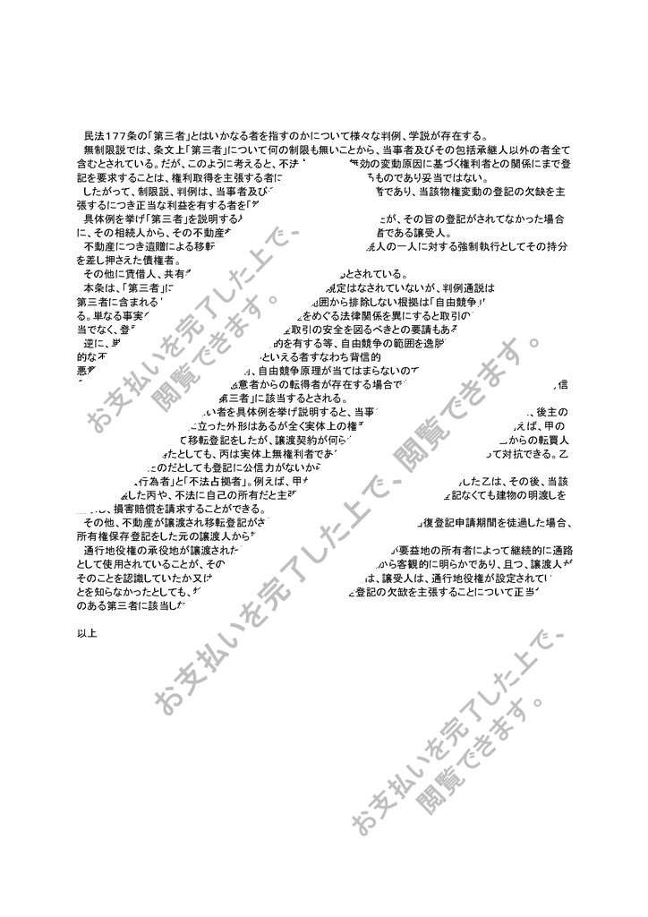 民法177条の「第三者」とはいかなる者を指すのかについて様々な判例、学説が存在する。