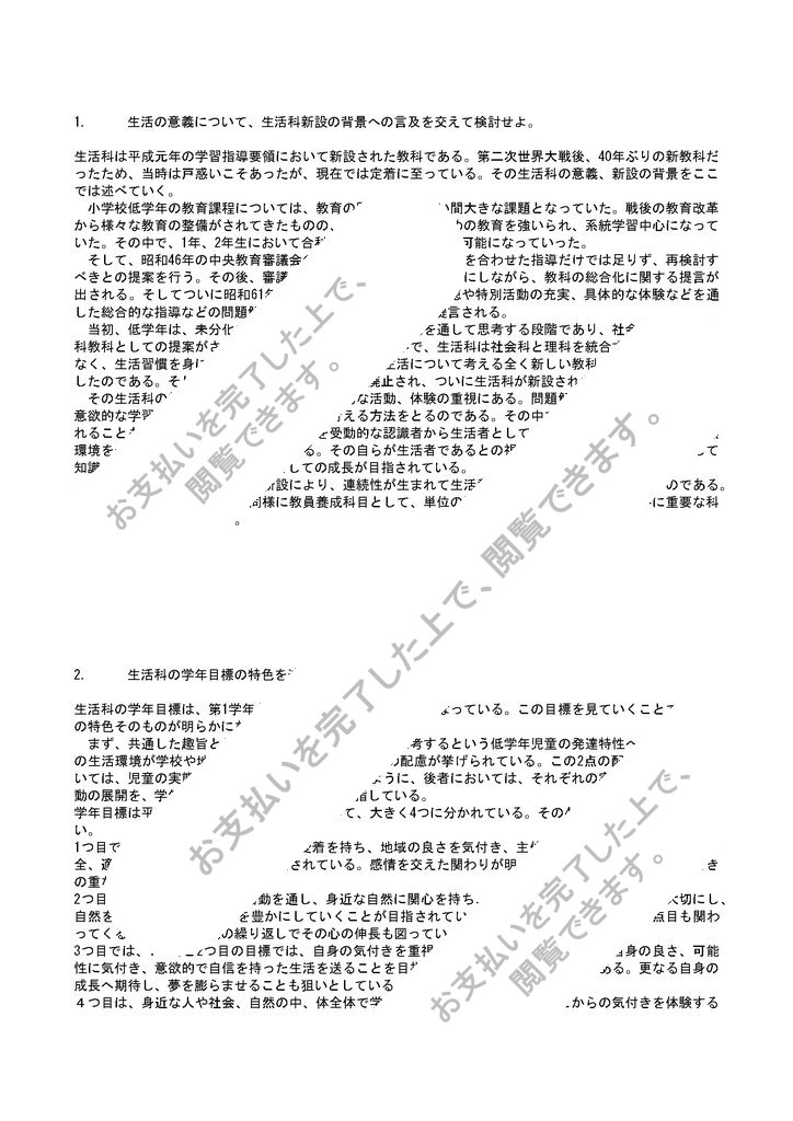 1.生活科の意義について、生活科新設の背景への言及をまじえて検討せよ。