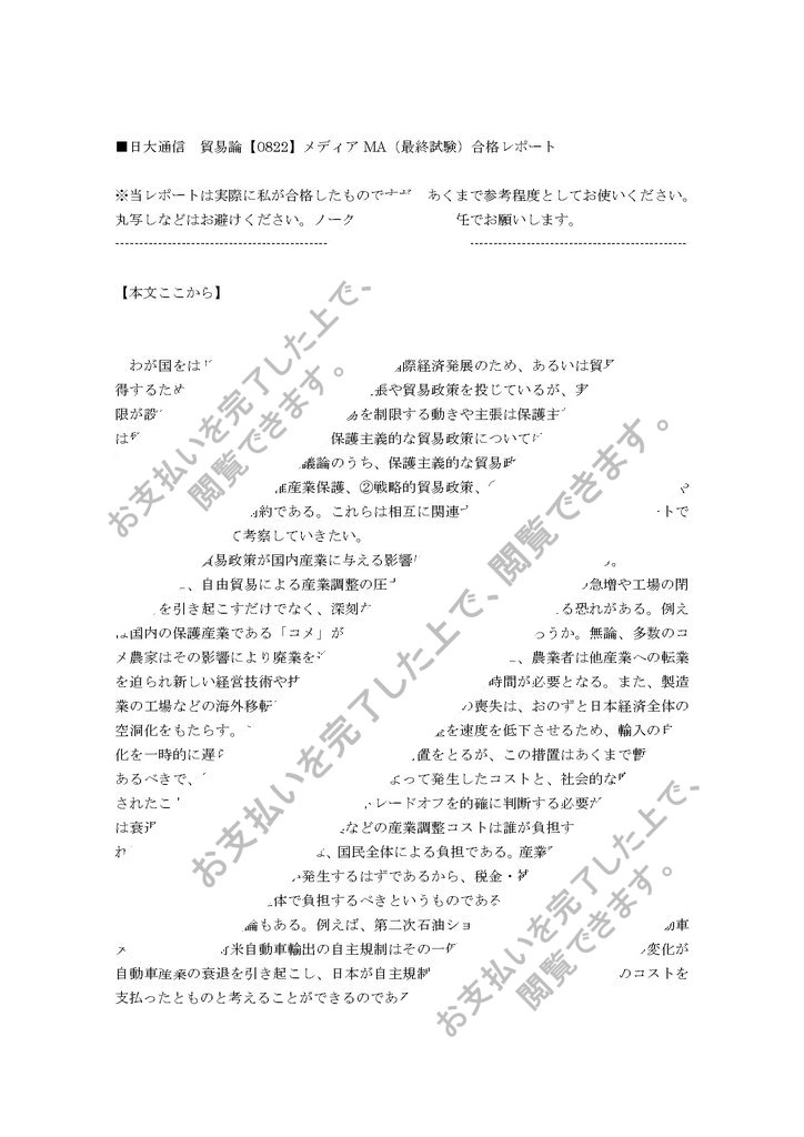 ■日大通信 貿易論【0822】メディアMA(最終試験) 合格レポー