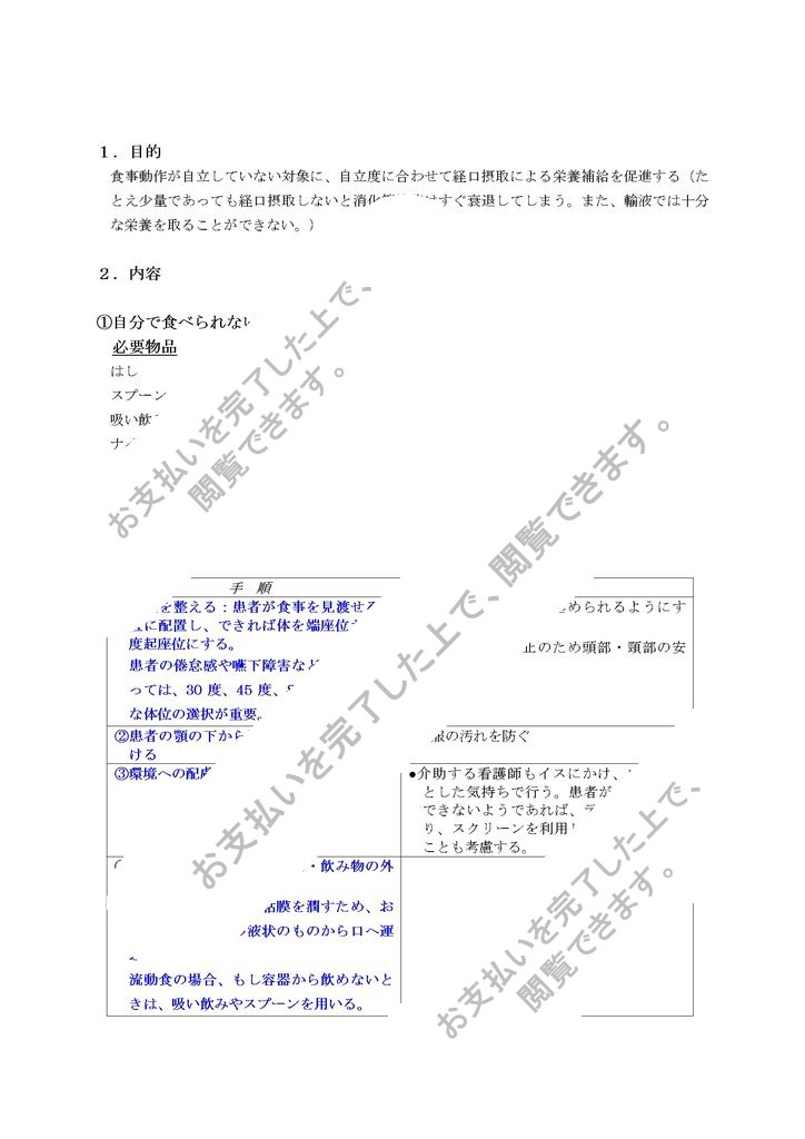 手 順 根拠・留意点 ①体位を整える:患者が食事を見渡せる位置に配置し、できれば体を端座位か90度起座位にする。