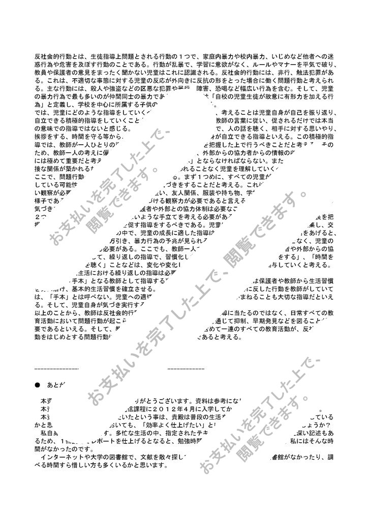 2012年度の明星大学 教育学部 通信教育課程における、レポート課題の合格レポートです。特に指摘もなく、高評価で1回目で「合格」の評価をいただきました。皆様のお役に立てれば幸いです。