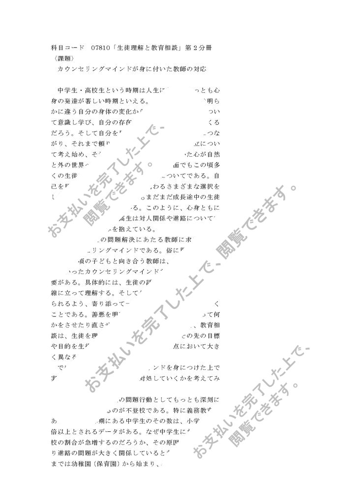 玉川大学通信教育学部「生徒活動と教育相談」第二分冊 2013年度・2014年度共通のレポート課題です。(合格済) 参考程度にご覧下さい。