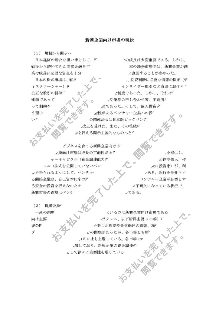 日本経済の新たな担い手として、新たな産業・企業の成長は大変重要である。しかし、戦後から続いてきた間接金融を主体とし、規制の多い日本の証券市場では、新興企業が創業や成長に必要な資金を十分に調達できないという問題に直面することが多かった。