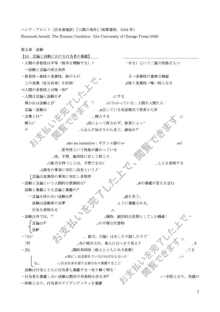 ハンナ・アレント(志水速雄訳)『人間の条件』(筑摩書房,1994年)