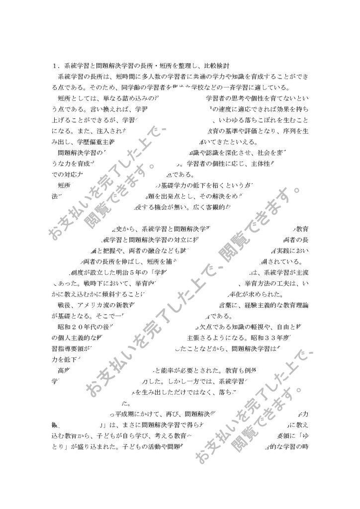 1、系統学習と問題解決学習の長所・短所を整理し、比較検討しなさい。