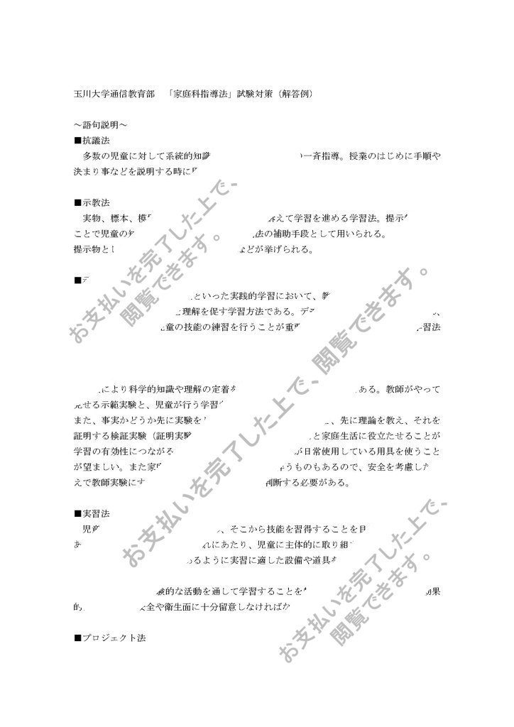 玉川大学通信教育部 「家庭科指導法」試験対策(解答例)