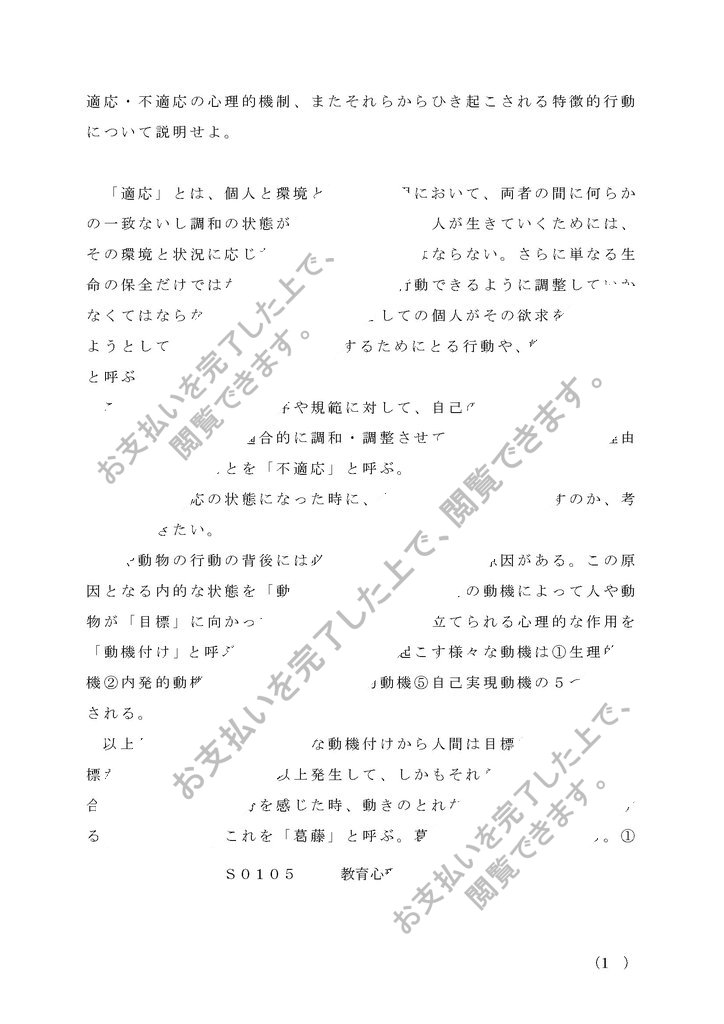 適応・不適応の心理的機制、またそれらからひき起こされる特徴的行動について説明せよ。