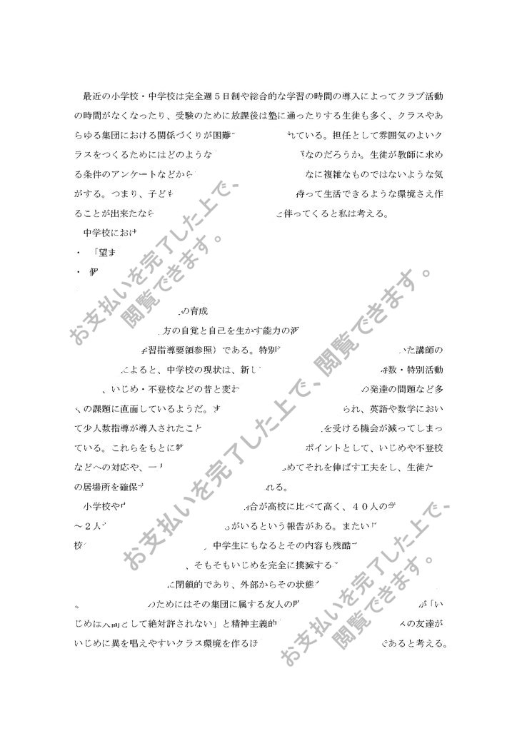 (平成10年 学習指導要領参照)である。特別活動研究の講義に来ていただいた講師の先生のお話によると、中学校の現状は、新しい教育課程の変化に伴う授業時数・特別活動の減少、いじめ・不登校などの昔と変わらぬ「中学校問題」や思春期の発達の問題など多くの課題に直面している...