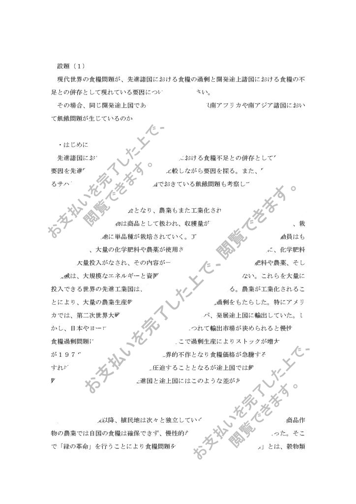 現代世界の食糧問題が、先進諸国における食糧の過剰と開発途上諸国における食糧の不足との併存として現れている要因について分析しなさい。