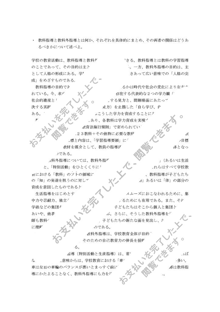 教科指導と教科外指導とは何か、それぞれを具体的にまとめ、その両者の関係はどうあるべきかについて述べよ。