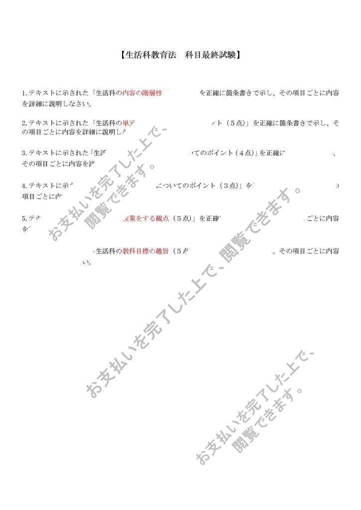 佛教大学 科目最終試験「生活科教育法」の過去問6題の解答です。