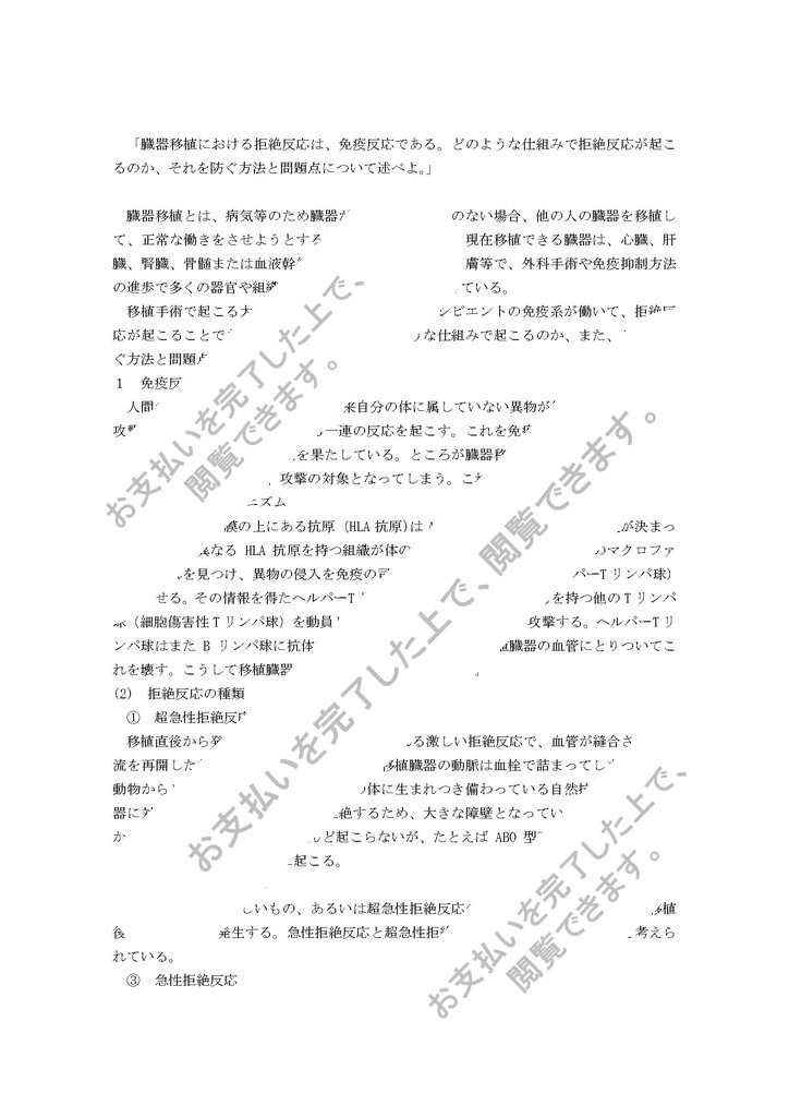 「臓器移植における拒絶反応は、免疫反応である。どのような仕組みで拒絶反応が起こるのか、それを防ぐ方法と問題点について述べよ。」