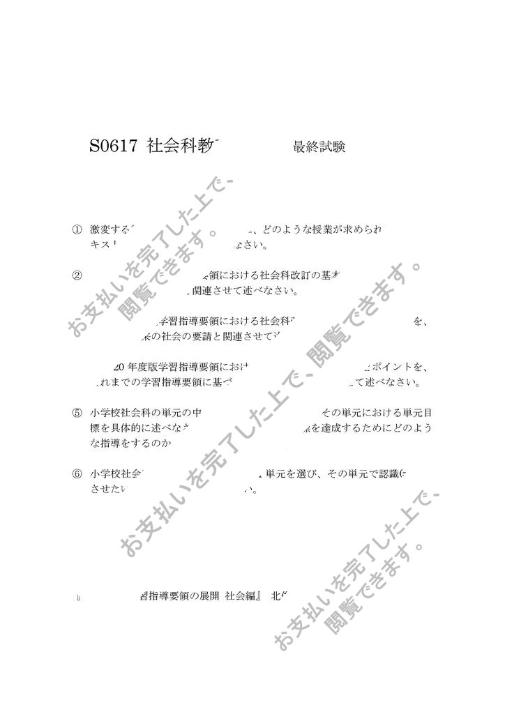 佛教大学通信教育課程 S0617社会科教育法 試験対策 6題分の解答です。