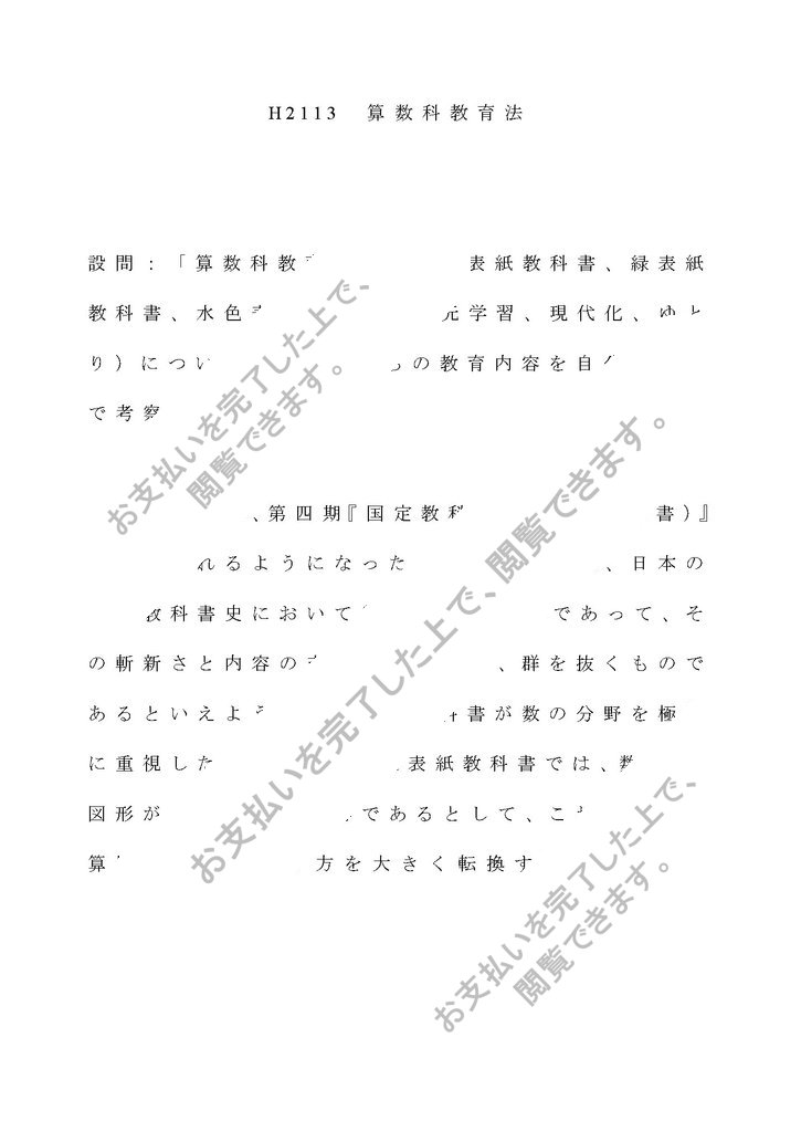 設問:「算数科教育の歴史(黒表紙教科書、緑表紙教科書、水色表紙教科書、単元学習、現代化、ゆとり)について述べ、それらの教育内容を自分の視点で考察せよ。」