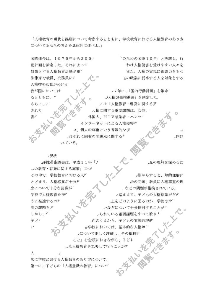 「人権教育の現状と課題について考察するとともに、学校教育における人権教育のあり方についてあなたの考えを具体的に述べよ。」