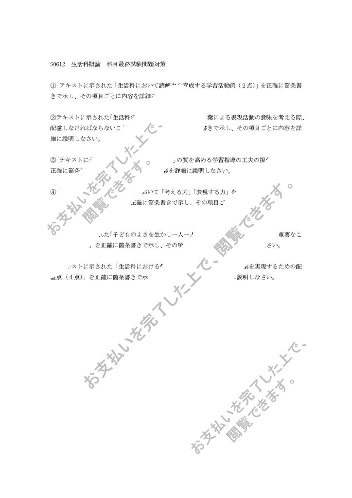 S0612 生活科概論 科目最終試験対策6設題セットです。