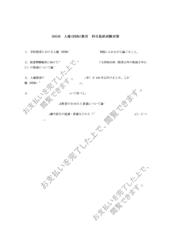 S0536 人権(同和)教育 科目最終試験対策6設題セットです。