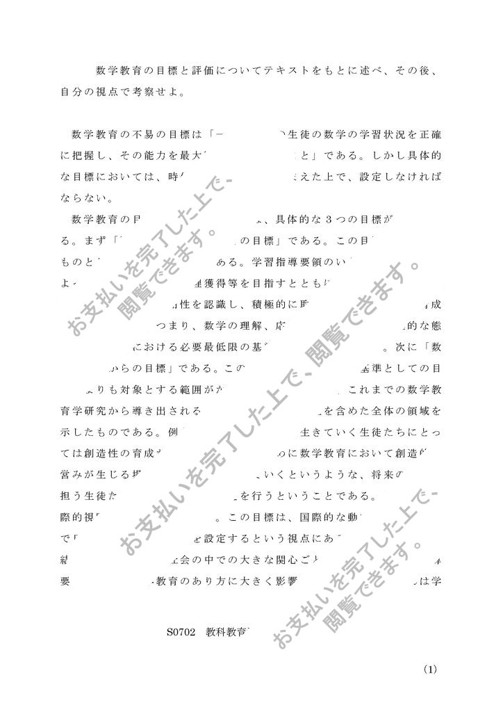 S0702 教科教育法数学1 第1設題