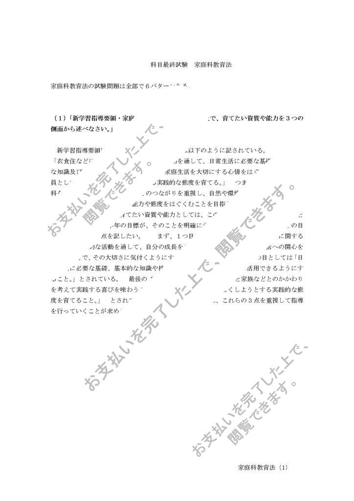 「家庭科教育法」の科目最終試験問題のまとめです。