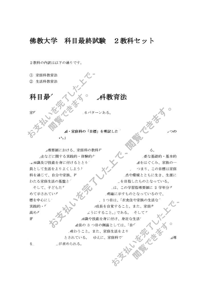 科目最終試験問題の2教科(家庭科教育法、生活科教育法)をまとめたセットです。