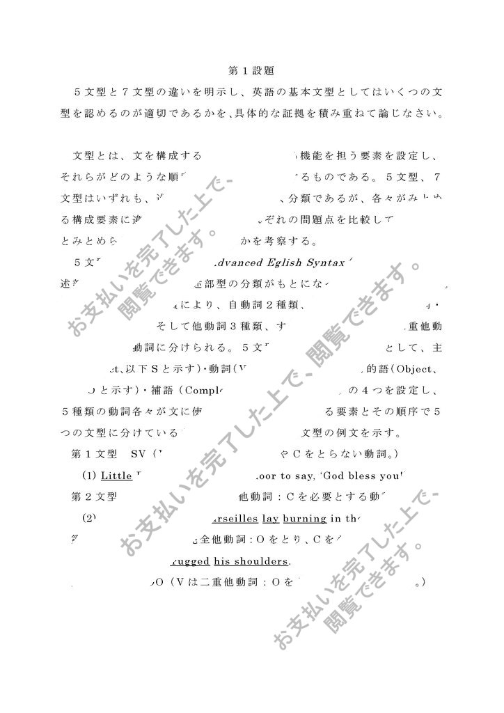 設題「5文型と7文型の違いを明示し、英語の基本文型としてはいくつの文型を認めるのが適切であるかを、具体的な証拠を積み重ねて論じなさい。」