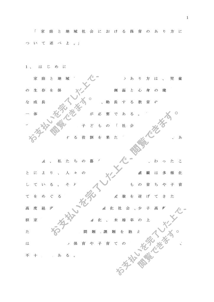「家庭と地域社会における保育のあり方について述べよ。」