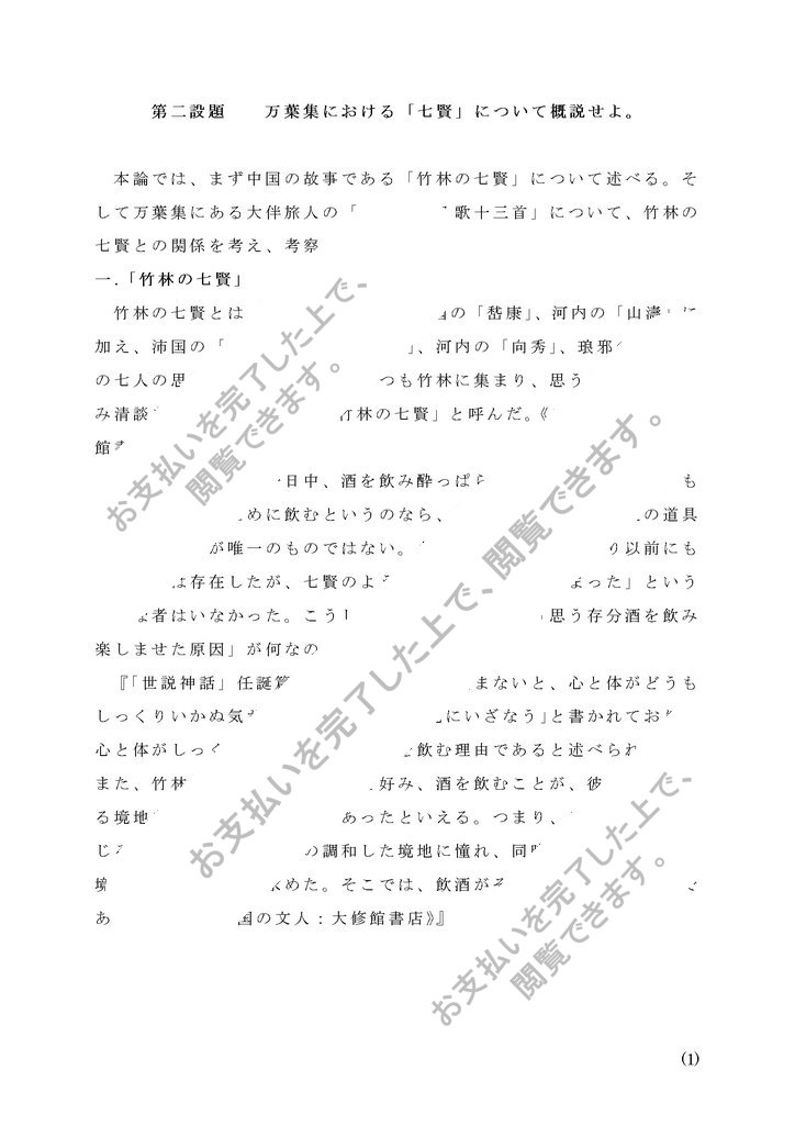 第二設題 万葉集における「七賢」について概説せよ。
