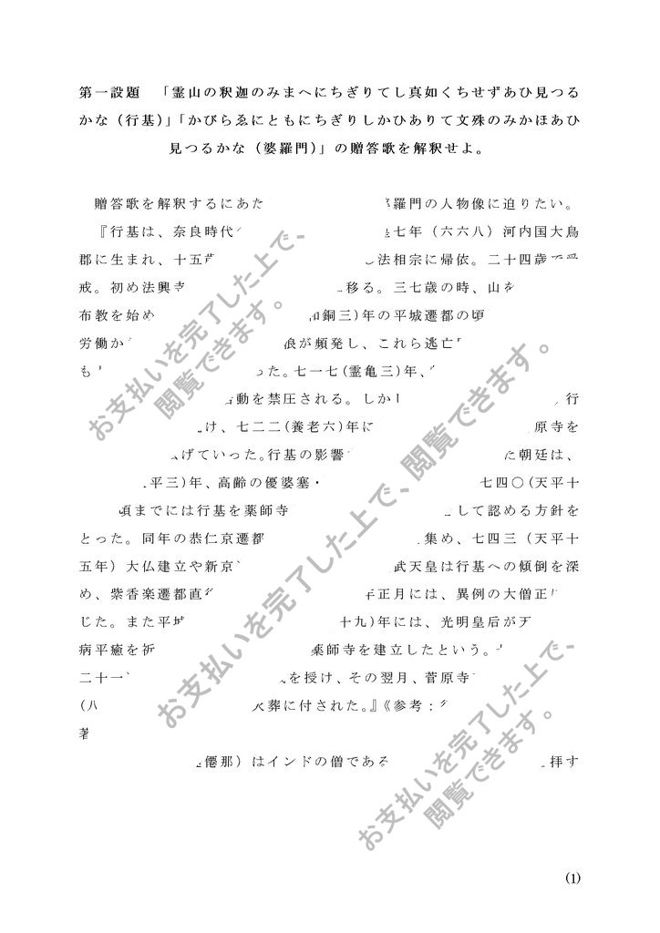 第一設題 「霊山の釈迦のみまへにちぎりてし真如くちせずあひ見つるかな(行基)」「かびらゑにともにちぎりしかひありて文殊のみかほあひ見つるかな(婆羅門)」の贈答歌を解釈せよ。