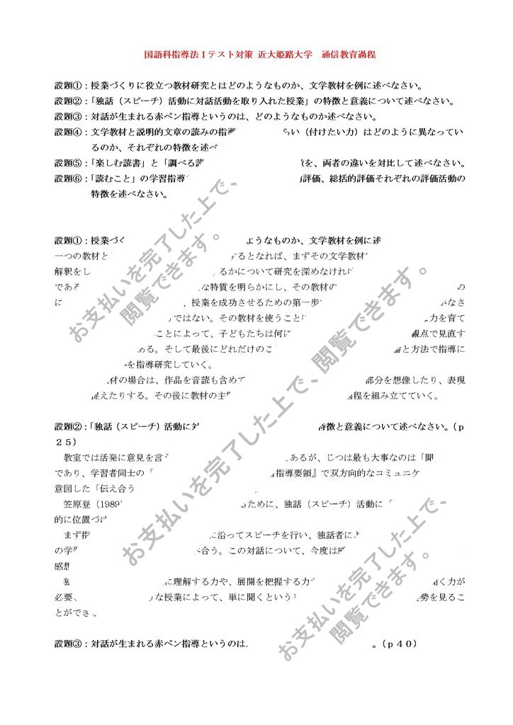 国語科指導法Ⅰテスト対策 近大姫路大学 通信教育過程