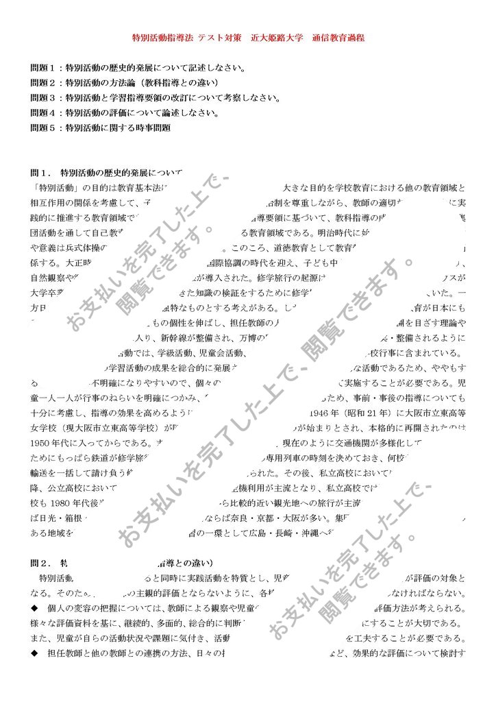 問題1:特別活動の歴史的発展について記述しなさい。