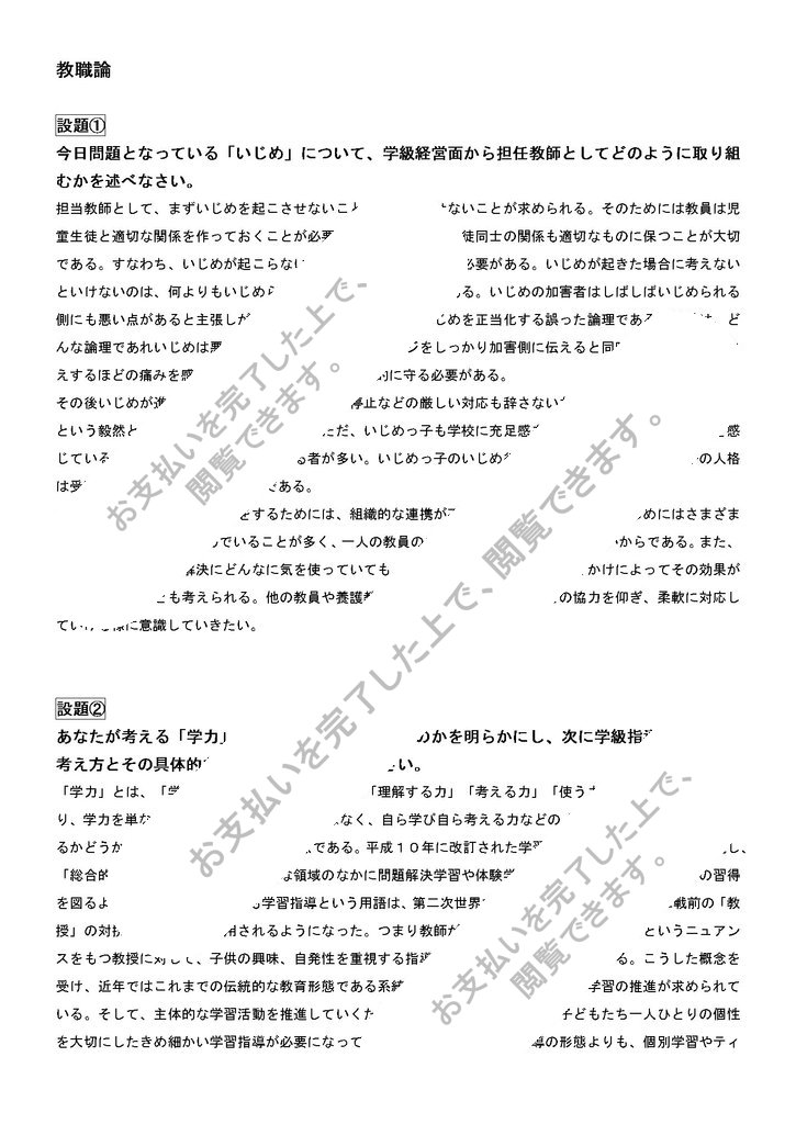 今日問題となっている「いじめ」について、学級経営面から担任教師としてどのように取り組むかを述べなさい。