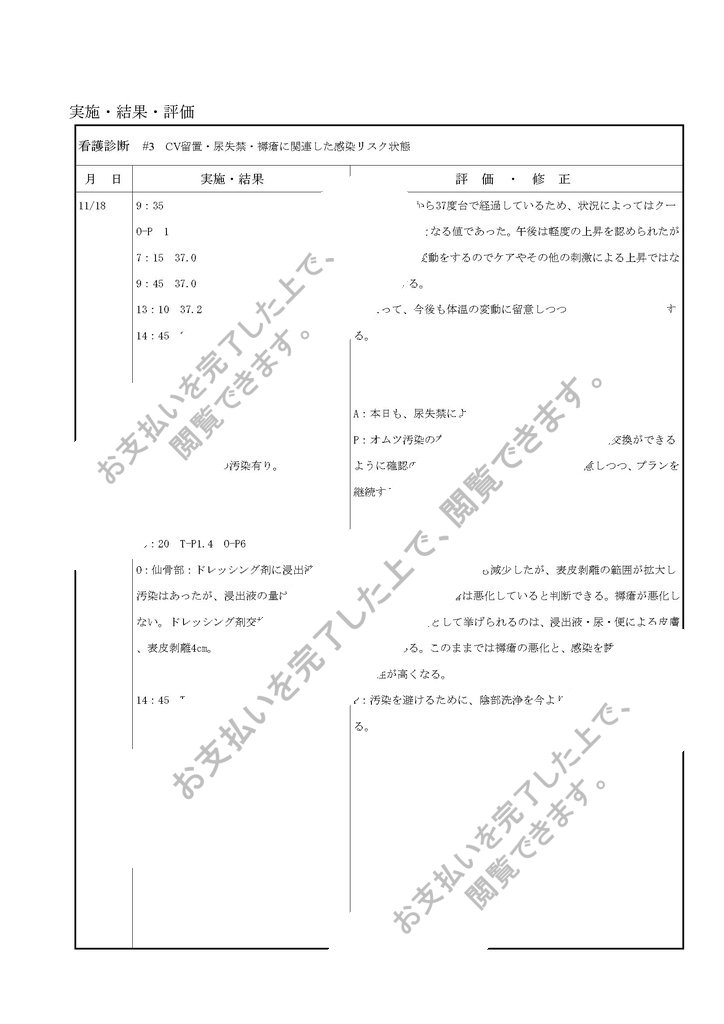 看護診断 #3 CV留置・尿失禁・褥瘡に関連した感染リスク状態 月 日 実施・結果 評 価 ・ 修 正 11/18 9:35