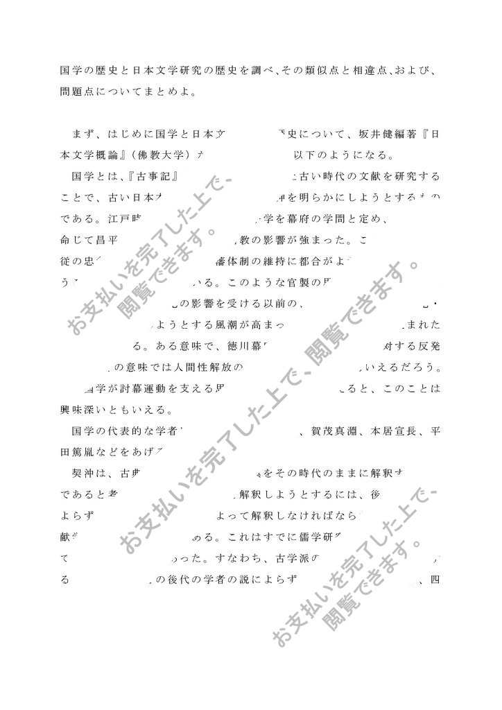 国学の歴史と日本文学研究の歴史を調べ、その類似点と相違点、および、問題点についてまとめよ。