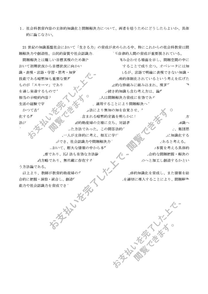 社会科教育内容の主体的知識化と問題解決力について、両者を培うためにどうしたらよいか、具体的に論じなさい。