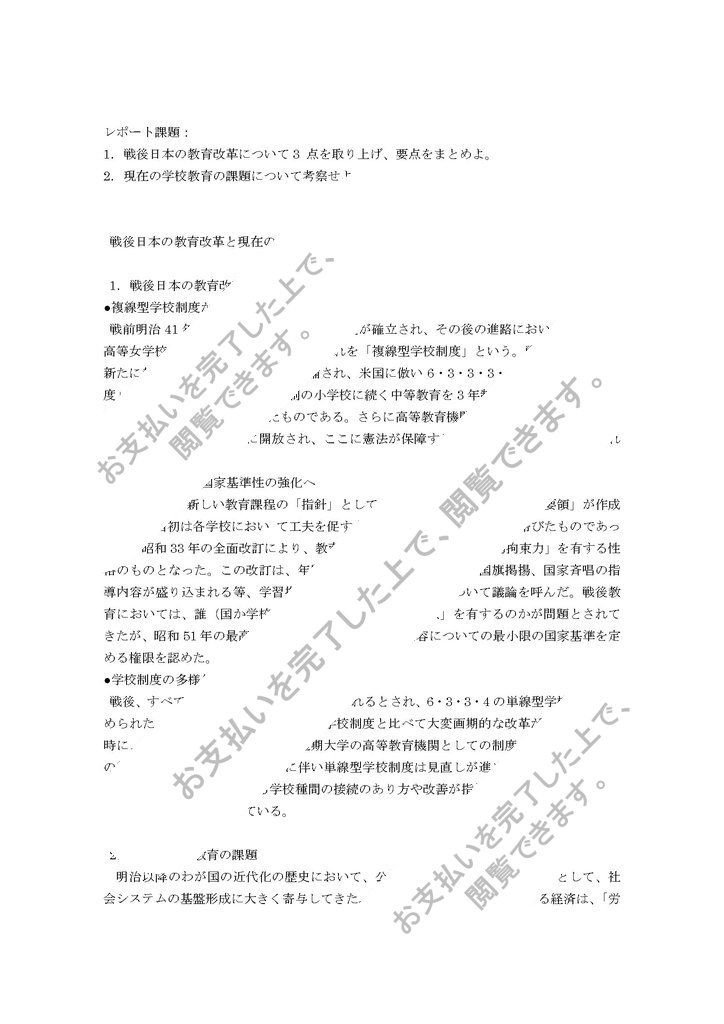 1.戦後日本の教育改革について3 点を取り上げ、要点をまとめよ。