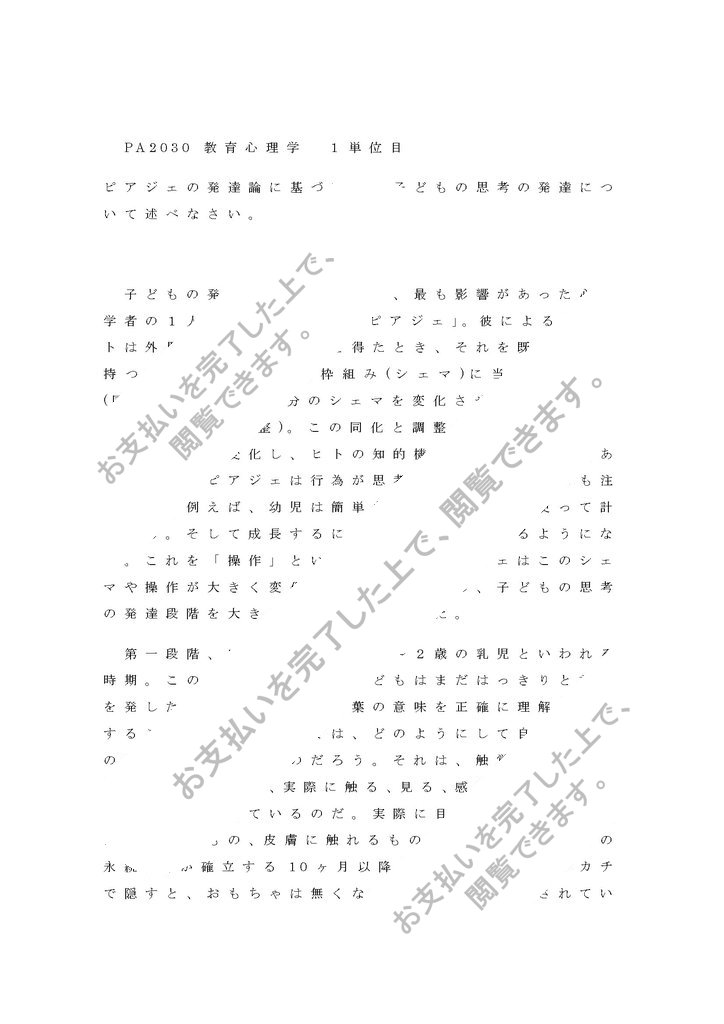 明星大学 教育心理学1単位目 合格レポートです。