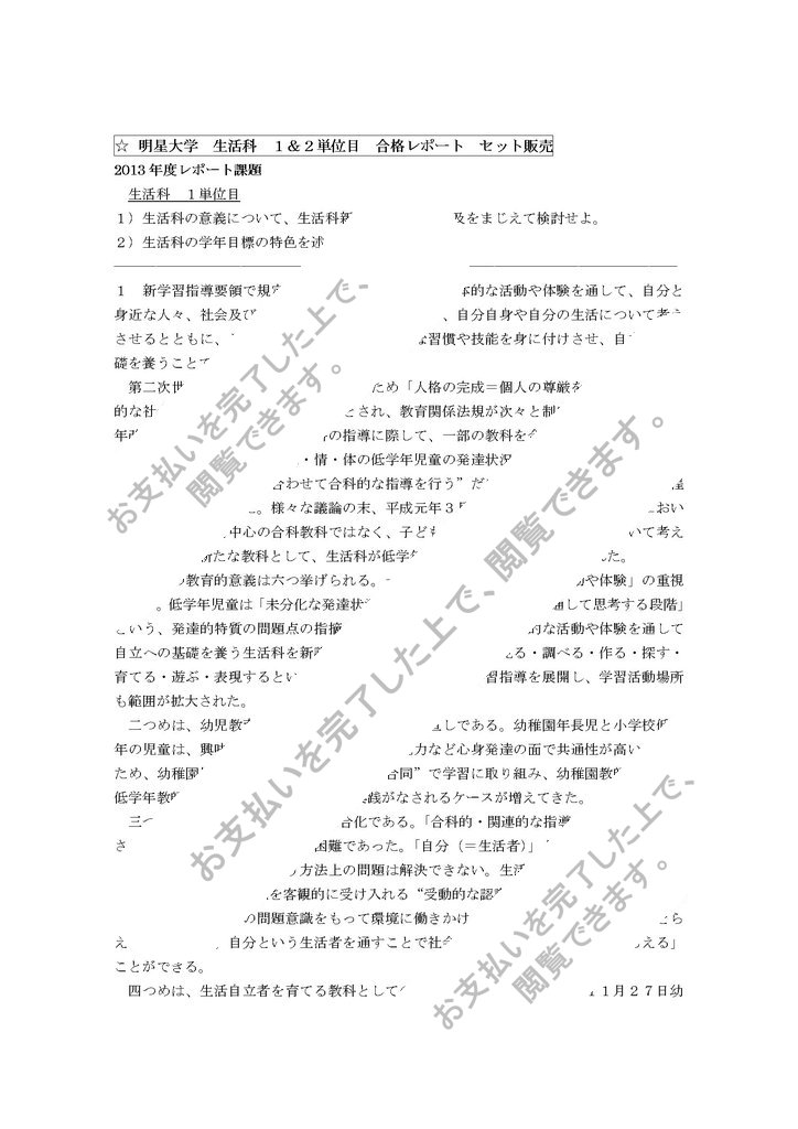 明星大学の2013・2014年レポート課題、生活科1&2単位の合格レポートセットです。